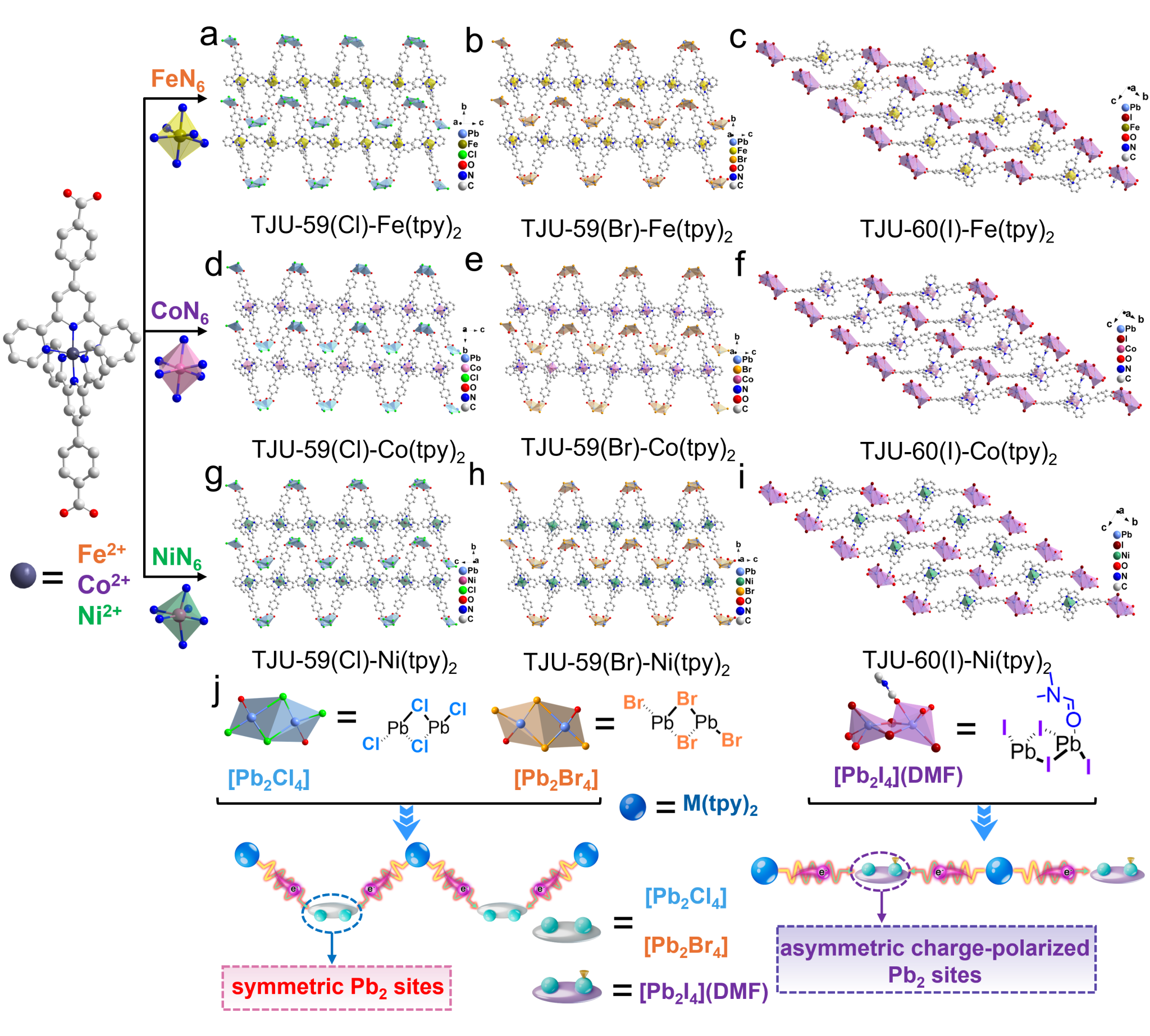图1. M(tpy)2卤化铅框架的合成与晶体结构