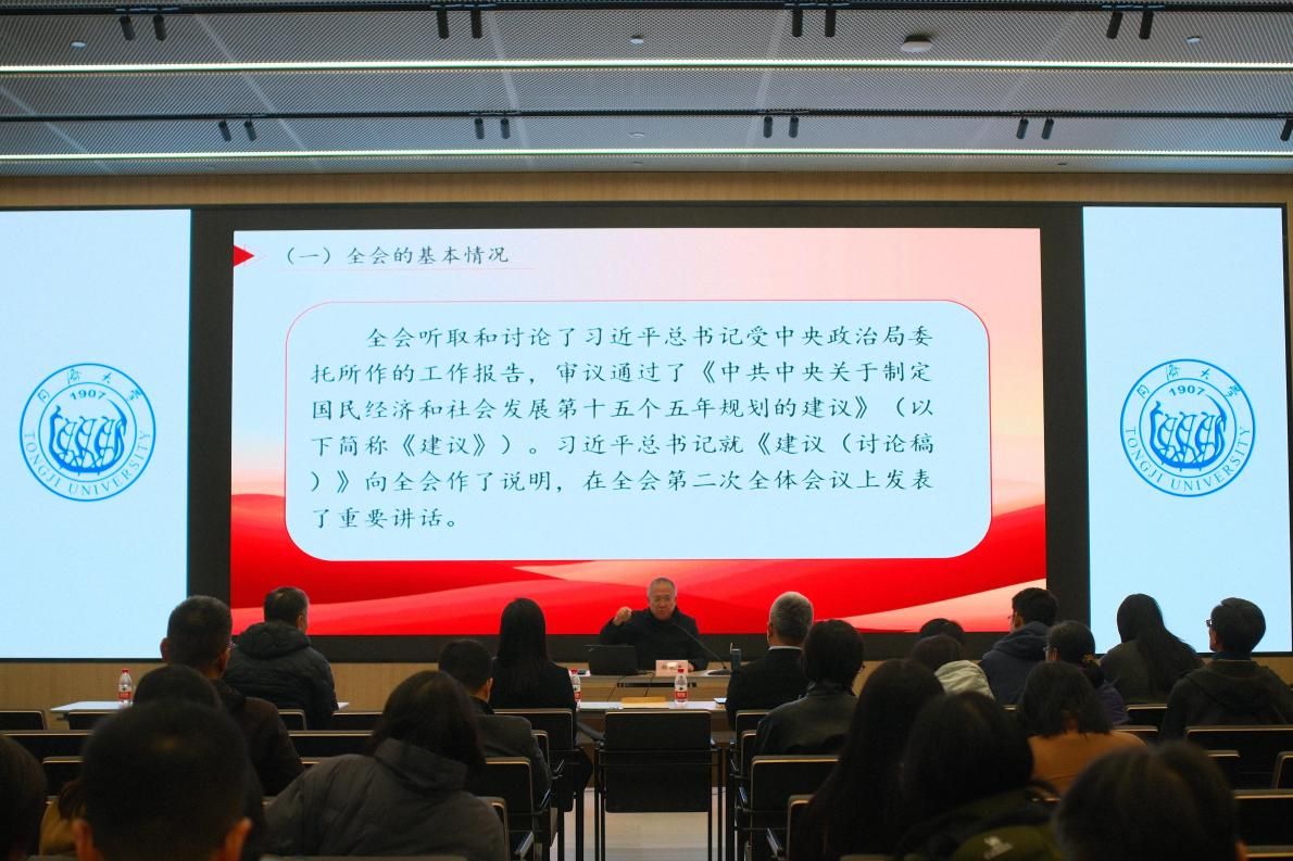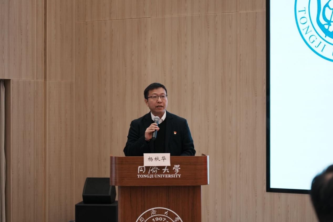 首先,同济大学党委组织部副部长杨秋华作动员讲话。他指出,党的二十届四中全会是在全面建设社会主义现代化国家新征程的关键节点召开的一次具有里程碑意义的盛会。学校党委常委会会议于今日审议通过了《同济大学关于学习宣传贯彻党的二十届四中全会精神的工作方案》《同济大学关于党的二十届四中全会精神宣讲的工作方案》,成立了同济大学党的二十届四中全会精神宣讲团。他肯定了本次联学形式是一场形式新、规格高的集中培训学习会。他寄语老师们从郑教授的报告中,进一步深刻把握全会精神的核心要义,把思想和行动统一到全会精神上来,把智慧和力量凝聚到落实立德树人根本任务、培养拔尖创新人才和科学谋划同济基础学科“十五五”发展规划上来,携手共进、开拓创新,不断提升基础学科实力,着力打造基础学科品牌,为服务国家重大战略需求、全面增强自主创新能力作出同济人的新贡献。