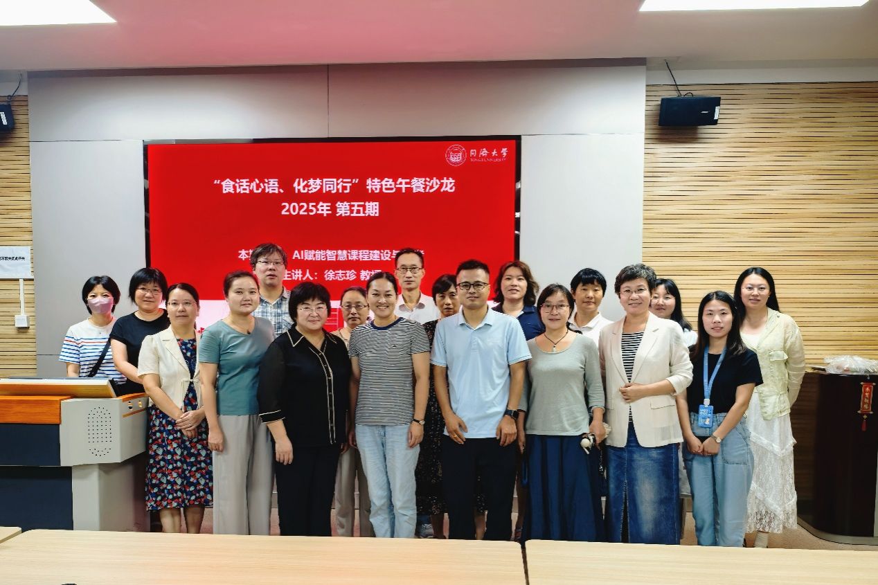 人工智能赋能教育教学,“以智助教、以智助学”是目前广大教师关注的热点话题。为帮助教师更好地认识和建设智慧课程,2025年9月25日中午,学院工会在化学馆120报告厅举办2025年“食话心语、化梦同行”第五期特色午餐沙龙活动。本次沙龙特别邀请华东理工大学化学与分子工程学院徐志珍教授,带来题为 “AI赋能智慧课程建设与思考” 的专题讲座,共吸引31位教师积极参与。